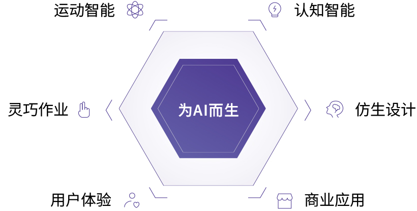 GRx系列首创“产品六边形”标准,将运动智能、认知智能、灵巧作业、仿生设计、用户体验和商业应用六个关键维度集成评估,不断迭代、创新,形成以GR-1、GR-2为核心的产品矩阵,让“为AI而生”成为GRx系列的长期使命,服务AI全生态领域的开发者与使用者。