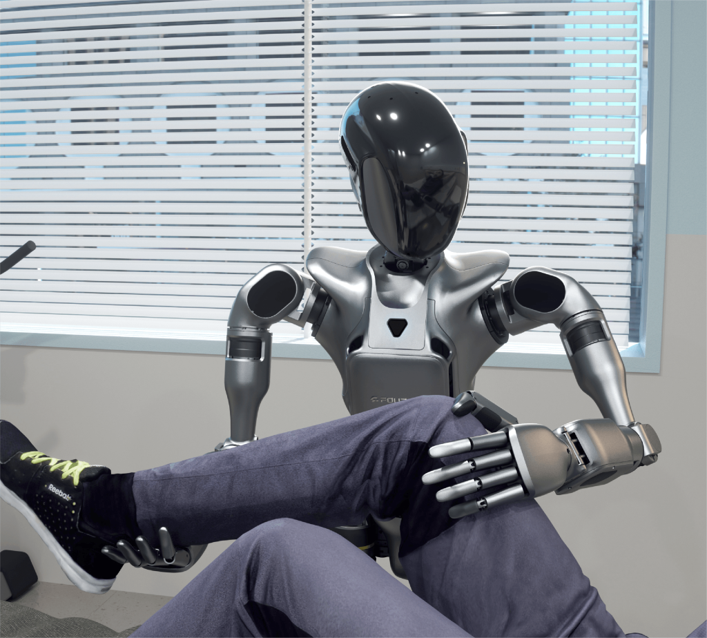 GR-1拥有与成年人等身大小的外观结构设计,能够支持包括侧身、下蹲、抓握等动作在内的丰富的预定义动作。