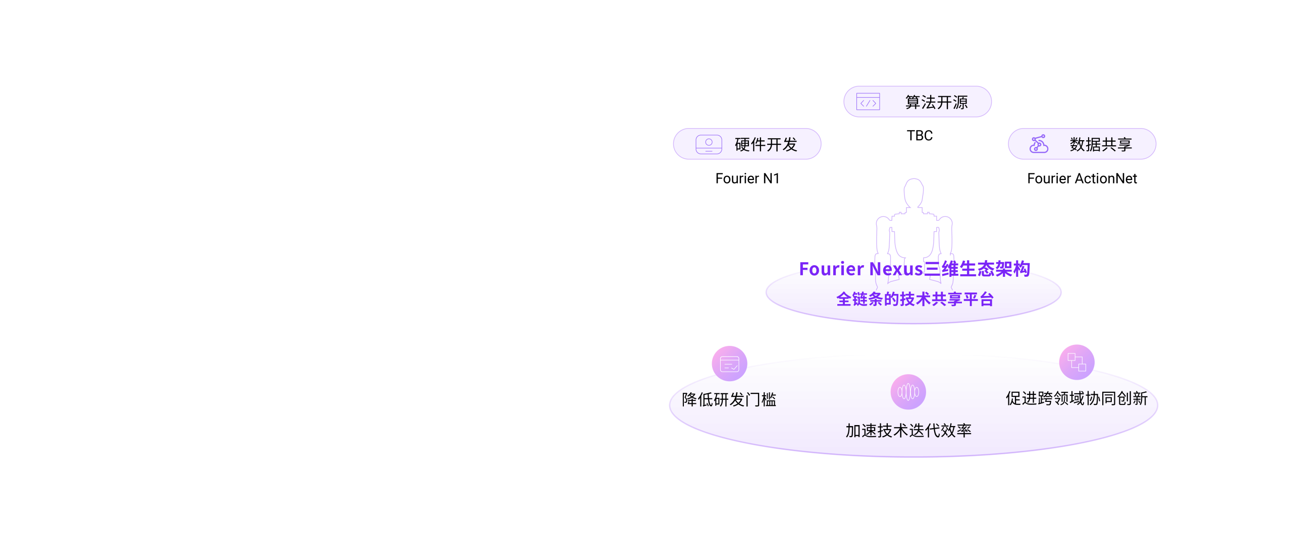 傅利叶牵头搭建Fourier Nexus通用机器人生态网络,通过硬件开发、算法开源、数据共享三维架构,持续降低行业研发门槛,推动跨行业、跨场景的协同创新。